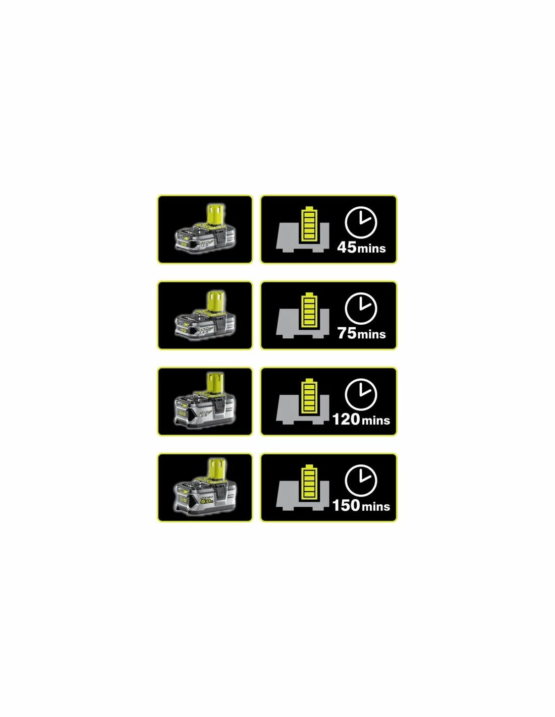 - Livraison : Le chargeur RYOBI 18v One+ RC18120 est livré dans un emballage carton.