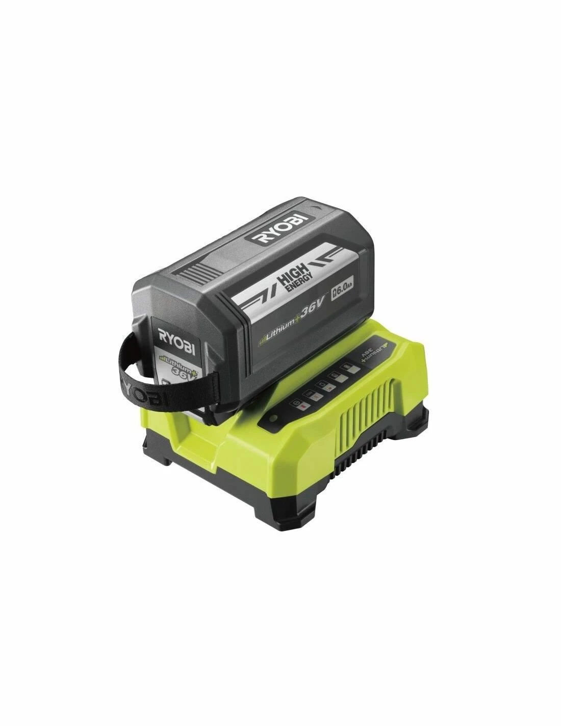 Pack composé d’une batterie 36V 6Ah Li-Ion BPL3660D2 et d’un chargeur rapide 6A RY36C60A.
