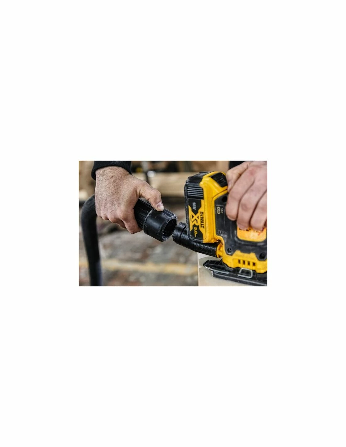 - Port de poussière compatible avec certains aspirateurs et extracteurs Dewalt
